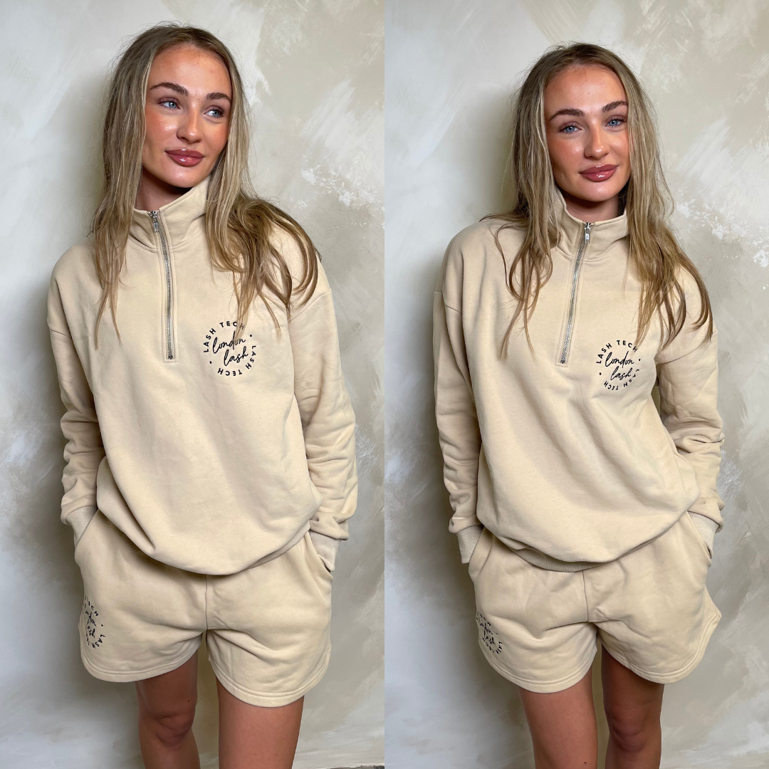 The London Lash Sweatshirt & Shorts Set is your go-to cosy combo for autumn. Made from ultra-soft fabric in a chic beige tone, it’s perfect for staying comfortable (and stylish) at work.