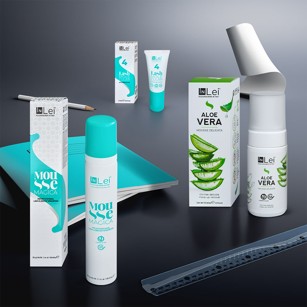 1. Cleanse natural lashes and eye area with Lash Shampoo and Protein Pads.